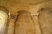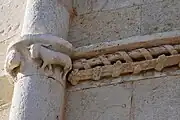 Il présente également trois colonnes engagées avec des corbeilles historiées, dont les originaux se trouvent à La Sauve-Majeure : un Daniel dans la fosse aux lions et deux centaures affrontés.