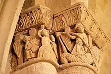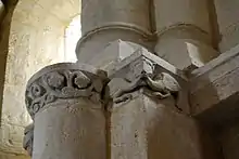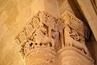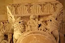 La composition est une copie d'un grand chapiteau de l'abbaye de La Sauve-Majeure.