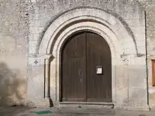 La nef s’ouvre sur deux portes en plein cintre (à l’ouest et au sud) ; la porte occidentale est surmontée d’un gâble[4].