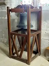 - La cloche du XIIIe siècle est classée depuis le , et compte parmi les plus anciennes de France. C'est probablement la seule cloche subsistante qui a été fabriqué selon le procédé mis au point par le moine Théophile. Elle a été étudiée par Léon Plancouard en 1904. Elle porte pour seule inscription, en caractères gothiques « O REX GLORIE XTE VENI CUM PACE » ce qui signifie « Ô Christ, Roi de gloire, viens en paix », et semble être le début d'une ancienne prière ou incantation. Petite par sa taille, elle mesure 47 cm de haut, a un diamètre 35 cm, et atteint un poids de 265 kg[14].