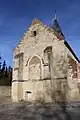 Arrière de l'église avec traces d'une ancienne baie gothique murée.