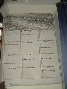 Marie Marguerite Carlier, épouse de Pierre Fauconnier, commissaire à terrier, décédée en 1766, est enterrée dans la nef au pied du mur sud; une pierre de ce mur en porte l'inscription.