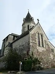 Le chœur est construit dans le deuxième tiers du XIIe siècle. La travée précédent le chœur roman communique au sud avec la travée portant celle qui porte le clocher. Les voûtes sont de style gothique angevin. Huit nervures partent des clefs des deux voûtes. La clef de la voûte nord montre un Christ montrant ses plaies. La clef de la travée sud est une clef armoriée.