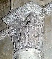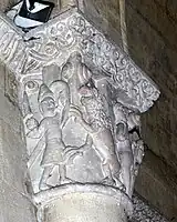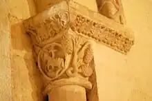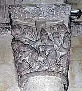 Trois des chapiteaux ont une décoration végétale soignée. Celui du nord-est est historié.