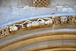 Par contre, au sommet de la voussure sont représentés des personnages de facture romane. Les voussures sont recouvertes d'un décor végétal, frises de palmettes ou d'acanthes sèches. La clef de l'archivolte porte un diable en effigie, un masque à oreilles en pointes qui recrache des tiges volutées. Il est probable que ce masque, qui est de style Renaissance, a été ajouté lors d'une restauration du XIXe siècle.