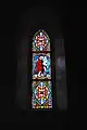 Fenêtre nord : Sur chacun des deux chapiteaux, une masque maléfique crache des rinceaux et des feuillages ; ils datent de la restauration de 1897.