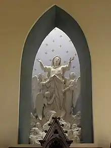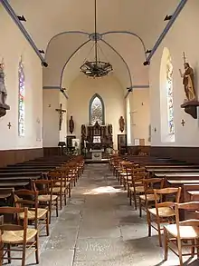 Elle a été édifiée entre 1857 et 1862 dans un champs a proximité de la mairie. L'église datant du XIVe – XVe siècle[1]était a l'emplacement de la la place du bourg entourée du cimetière (voir vieux cadastre). Ses vitraux ont fait l'objet en 2015-2016 d'un projet de restauration par la Fondation du Patrimoine[2],[3].