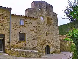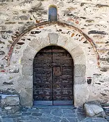 À sa base, elle présente une belle porte de tradition romane, ouverte au XVIIIe siècle, dont les piédroits sont constitués de blocs de pierre massifs, prolongés par les claveaux de l'arc en plein cintre, à clef saillante.