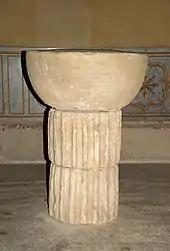 Le chœur abrite des fragments de colonnes gallo-romaines[2] dont deux sont superposés et supportent une cuve circulaire.