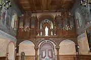 Construit sur une tribune à l'entrée de la nef, l'orgue a la particularité d'être scindé en deux parties distinctes, attachées l'une à l'autre par un clavier. Il comprend au total dix jeux répartis en deux claviers et un pédalier.