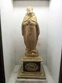 À droite du retable une statue polychrome de saint Yves du XVe siècle, offerte à l'église à la fin du XXe siècle.