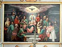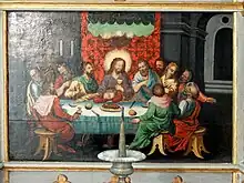 - Également au domaine de la peinture appartiennent les deux panneaux peints des ailes latérales du tabernacle du maître-autel, représentant la Cène et la Pentecôté (voir ci-dessus).