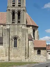Le collatéral nord du chœur ne compte qu'une seule travée de plan allongé, alors que le collatéral sud supporte le clocher haut de 32 m, et se trouve ainsi subdivisée en une courte travée rectangulaire et une base de clocher carrée. C'est la partie la plus ancienne de l'église, pouvant être datée de 1130 / 1140 environ. L'ensemble de l'église est voûté d'ogives, sauf la chapelle sud, qui est voûtée en berceau brisé. Dans le vaisseau central sauf dans l'abside, ce sont des voûtes sexpartites qui possèdent donc deux branches d'ogives supplémentaires perpendiculaires à l'axe de l'édifice. L'église possède deux accès : le portail occidental, peu utilisé, et le portail méridional dans la troisième travée du bas-côté sud. La structure des toitures est simple : le vaisseau central est recouvert par un toit à deux rampants avec pignon à l'ouest ; et les bas-côtés ainsi que les chapelles sont recouverts par des toits en appentis s'appuyant contre les murs du vaisseau central.
