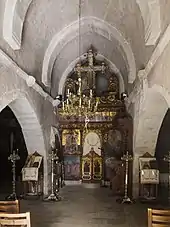 L'église est construite en plan basilical à trois ailes. À son entrée, se trouve un narthex, dont l'ajout remonte au XVe siècle. À la jonction de ce dernier avec la nef, se trouve une tour à dôme de forme circulaire, d'une hauteur exceptionnelle, également construite au cours du XVe siècle. Le clocher latéral, de petite taille, est ajouté au cours du XIXe siècle. L'intérieur de l'église est décoré de peintures murales, cependant, peu d'entre elles subsistent[1],[2].