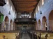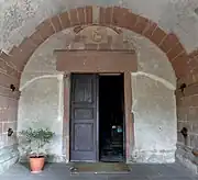 On peut noter également un remarquable linteau sculpté de sept médaillons représentant la main de Dieu (en) au centre et, de part et d’autre, des agneaux, des motifs végétaux et des formes géométriques. Sur le linteau on peut lire l'inscription "J+HOC QUI COENOBIUM CUPITIS TRANSIRE DECORUM POSITE SUPREMAM ABBATIS VENIAM LIUTHAR(DI) SUBERAM"
