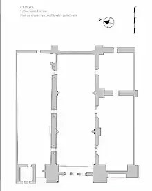 Le plan du niveau des combles des bas-côtés garde les dispositions générales du niveau du rez-de-chaussée sur lequel il est établi. Au-dessus du voûtement des bas-côtés est entassée une quantité considérable de décombres issus des remaniements au cours des siècles.