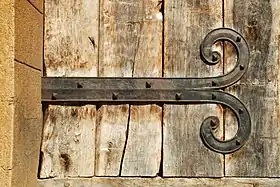 Elle possède un remarquable portail roman consistant en une porte en bois massif aux remarquables pentures logée sous un avant-corps (sorte de protiro) soutenu par des pilastres cannelés et des colonnes dont les chapiteaux sont sculptés de motifs floraux très stylisés.