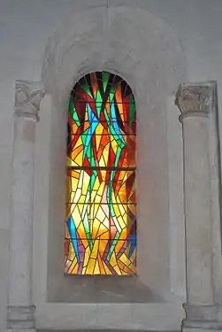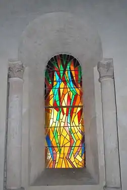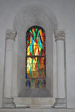 Les vitraux du sanctuaire ont été posés durant la restauration de 1963-65. Ils sont l’œuvre du maitre verrier Raymond Mirande (1932-1997).