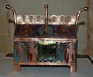 - Une châsse reliquaire du XIIIe siècle en cuivre doré et émail est conservée dans le trésor de l'église. Le coffret a été classé[8] aux Monuments Historiques à titre d'objet le .