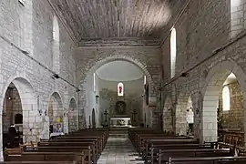 Le chœur est en cul-de-four ; la nef est à quatre travées avec cinq fenêtres sur les bas-côtés et trois dans la nef ; elles sont toutes en plein cintre. Les plafonds sont en bois et plans.