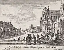 La construction de l'église est commencée en 1628 par le maître-maçon Louis Noblet, et la reine Marie de Médicis pose la première pierre le . En 1643, Michel Villedo[2] reprend les travaux qui ont été arrêtés en 1631, pour les terminer vers 1646. L’église est consacrée (dédicacée) le , sous la présidence de la reine Anne d'Autriche, par Jean-François Paul de Gondi, futur cardinal de Retz, et coadjuteur de l'archevêque de Paris. Elle est alors dédiée à sainte Élisabeth de Hongrie et à Notre-Dame de Pitié. Le parrain et la marraine de la cloche sont le duc d’Angoulême, grand prieur de l’ordre de Saint-Jean de Jérusalem, et Charlotte de Montmorency.