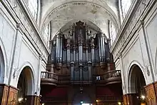 Le grand Orgue est placé sur une grande tribune au fond de la nef. C'est le plus grand instrument de Marie Antoine Louis Suret, inauguré en 1853. Après avoir été modifié profondément par la maison Gutschenritter, l'instrument finit par tomber en panne. Ayant perdu toute son intégrité, il est restauré en 1994-1999 par la manufacture Giroud, qui restitue la composition d'origine à l'exception de l'Euphone du grand orgue, qui est remplacé dans la composition actuelle par un Plein-Jeu, et des jeux à anches libres, reconstitués à anches battantes. De plus, la pédale d'orage disparue est remplacée par un appel des jeux de 16 pieds du grand orgue. Cet orgue est classé monument historique[11]. L'instrument de Suret a succédé à un instrument plus petit des frères Claude de Mirecourt (1845), célèbre en son temps pour son « sommier à piston ».