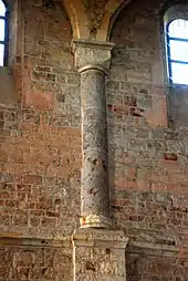 Colonne engagée à chapiteau cubique décorant les parois de la nef