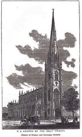 Le concepteur de Holy Trinity était l'éminent architecte américain du XIXe siècle Minard Lafever, avec des vitraux réalisés par William Jay Bolton et John Bolton entre 1845 et 1848[3],[4].