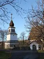 Le clocher actuel a été construit en 1768, son socle en pierre date du Moyen Âge. Il a deux cloches dont l'une porte une marque de l'année 1477[3].