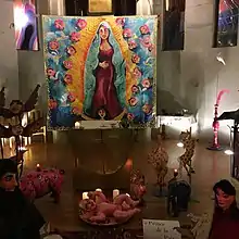 À cette occasion, les plasticiens Éric Brossier et Linda Hede, qui s'inspirent des arts populaires, forains et de la rue, ont offert et installé une crèche monumentale et inédite dans le chœur de l'église.