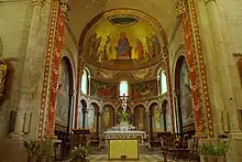- le Jugement dernier, les martyrs et les évêques locaux de l'abside[N 3], l'Agonie dans le jardin des oliviers[N 4], la Résurrection du Christ[N 5], les anges[N 6] sont dus au peintre Romain Cazes, peintre d'histoire à Paris, élève d'Ingres[N 7].