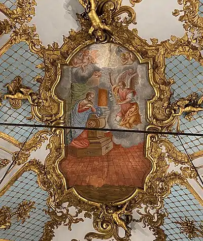 Au centre de la voûte, dans un médaillon on peut voir la scène de l'Annonciation datant de 1758. Son encadrement de stuc doré parait soutenu par quatre angelots. La peinture est l'œuvre du Bastiais Saverio Farinole. Il était membre de la confrérie Saint-Croix et en avait été prieur en 1748[3].