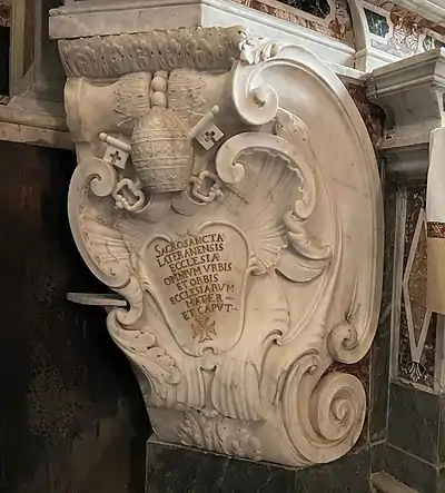 On peut voir dans un cartouche couronné de la tiare pontificale et des clefs de Saint-Pierre. On peut lire :