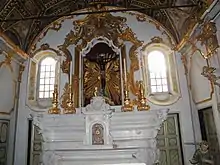 Le maître-autel est entièrement refait au XVIIIe siècle dans le style baroque. On peut voir deux grands cartouches où on peut lire à gauche :