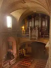 La nef de quatre travées à vaisseau unique est couverte de voûtes d'arêtes reposant sur trois arcs-doubleau. Elle est éclairée par des fenêtres à arc segmentaires reprenant l'arrondi des voûtes, celles au nord fournissant une lumière directe, celles au sud indirecte (en raison de la présence de l'infirmerie). Au revers de la façade une vaste tribune est soutenue par un arc-en-anse-de-panier[11] (elle supporte aujourd'hui le grand orgue). Accessible uniquement par le couvent, elle était destinée aux anciens esclaves libérés par les religieux le temps qu'ils se réadaptent à leur nouvelle vie (une série de pièces à usage d'infirmerie au sud avait le même usage, permettant aux plus malades de suivre les offices par quatre fenêtres). En-dessous, les deux premières chapelles latérales de droite et de gauche, aujourd'hui murées, se caractérisaient par des arcs-en-anse-de-panier. Six autres chapelles latérales plus hautes et séparées par des murs-boutants s'ouvrent de part et d'autre de la nef par des arcs en plein cintre. Elles sont voûtées d'arêtes. Un transept non saillant comprenait deux autres chapelles, une seule aujourd'hui, l'autre servant de passage vers la sacristie. Au centre, à la croisée du transept, le maître-autel se trouvait sous un arc-triomphal peu marqué. Derrière, un vaste chœur à chevet plat de deux travées, était éclairé par deux fenêtres à arc segmentaire et un oculus. Ces trois ouvertures sont aujourd'hui bouchées[12]. Les Mercédaires y chantaient les différents offices du jour.