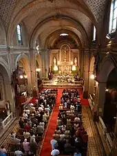 La fin du XIXe siècle vit aussi de nombreux réaménagements de l'église, reflet du fort accroissement de la population de ce quartier. De cette époque date le pavement de la nef en carreaux de ciment recouvrant l'ancien sol en dalles de pierre. En 1898 l'ensemble des peintures décoratives de la nef furent réalisées, notamment les décors à étoile des voûtes, les lys blancs de part et d'autre des fenêtres et les palmes aux écoinçons des arcs des chapelles latérales. Citons aussi dans ces dernières, les retables en trompe-l'œil des chapelles de Saint-Joseph et du baptistère. L'entrée du sanctuaire fut reculée d'une travée et le sol creusé au même niveau que la nef, augmentant d'un quart la contenance de l'église. La différence de niveau avec les bras du transept est masquées par deux bancs d'œuvre. Un nouveau maître-autel en marbre blanc et rose de Carrare et en onyx fut placé dans l'ancien chœur, sous l'oculus de la voûte. Mais il fut à son tour modifié à la fin du XXe siècle, la table d'autel fut avancée tandis que le tabernacle et les gradins étaient reculés contre le mur du fond. La partie centrale de la barrière de communion fut elle aussi supprimée avant d'être remplacée par une nouvelle en fonte en 2013. Les trois cloches actuelles datent de 1904 (en vidéo sur le lien ci-dessous).