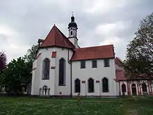 Il n’existe plus de vestiges de l’église primitive, qui datait sans doute du XIe siècle. Le chœur des moines, du XIIIe siècle est aujourd’hui la partie la plus ancienne de l’église, le chœur des frères date du XVe siècle. Au XVIIIe siècle, les frères Dominikus et Johann Baptist Zimmermann, ont profondément remanié l’église dans le style baroque[1].