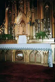L'intérieur est modifié dans les années 1970, à cause des réformes post-conciliaires, mais l'ancien maître-autel demeure heureusement en place.
