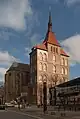 Elle a sévèrement été endommagée par les bombardements anglais de la fin de la Seconde Guerre mondiale et restaurée. Son clocher a été achevé au XVIIIe siècle. C'est une église luthérienne depuis la réforme de 1531.