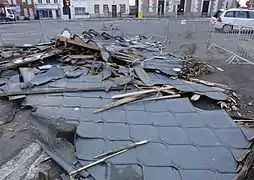 Le , la moitié nord de la toiture du clocher s'envole sur la place à cause de la tempête Eleanor[4].