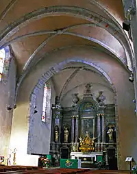 Dans le chœur, un imposant retable polychrome, achevé en 1714, fait de différents marbres, de pierres en calcaire et de bois doré, est orné des statues de saint Pierre, saint Paul, sainte Spérie et sainte Fleur.