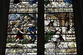 Il est à noter son retable de la Passion[2] du XVIe siècle en calcaire polychrome, bois et fer, sa grille du chœur[3], don des époux Brodiez et Gouverne en 1818. Elle possède aussi des fonts baptismaux hexagonaux[4] en calcaire décoré d'apôtres : debout ; Annonciation ; ange et de saints : abbé, saint Jean, saint Paul, saint Pierre, sainte du XIIIe siècle.