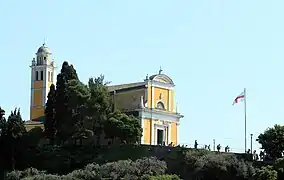 L'église se situe sur une falaise surplombant la mer dans le village de Portofino, dans la ville métropolitaine de Gênes.