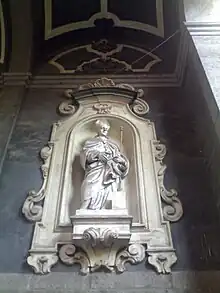 La coupole est peinte de fresques de Francesco de Mura; on remarque dans une chapelle de gauche La Crucifixion de Giacinto Diano.