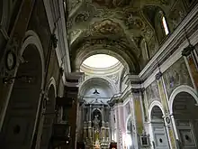 Cette église imposante a gardé toute sa majesté, même si une grande partie de son décor original a disparu. L'intérieur est entièrement recouvert de fresques. G. Gravante est l'auteur des fresques sur La Vie de la Vierge (1851) et de La Rédemption des captifs[2](1852). Deux tableaux du XVIIe siècle, qui se trouvaient autrefois dans la crypte, sont aujourd'hui montrés dans le transept droit.