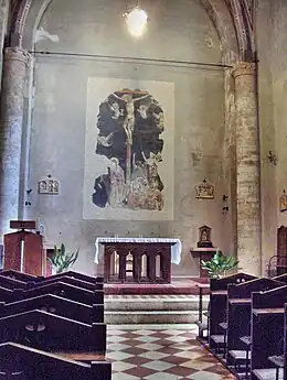 À l'intérieur sont conservées des peintures à fresque de grande qualité comme une Crucifixion et autres œuvres de maîtres ombriens du Trecento.
