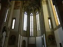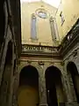 L'arche triomphale de l'abside a deux fresques avec la Crucifixion ; l'abside conserve des restes de pavement recouverts de majolique provenant d'un atelier napolitain de l'ère angevine (fin du 14e-début du 15e siècle). Est également présent un martyre de sainte Ursule attribué à Francesco da Tolentino (1520).
