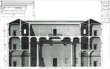 Cette liberté d'expression sans précédent est l'une des caractéristiques du Palladio de la maturité, lorsque l'assimilation de l'architecture romaine antique lui permet de rechercher des effets insolites comme superposer une frise corinthienne avec des bucranes et des festons, sur le modèle du temple de Vesta à Tivoli, à l'ordre dorique de la cour.