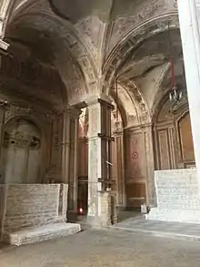 L'intérieur est dans un état dégradé. Les autels et œuvres d'art ont été enlevés ou dérobés. Il y avait autrefois un maître-autel du XVIIIe siècle avec une toile de Pietro Donzelli et une autre de l'école de Luca Giordano.
