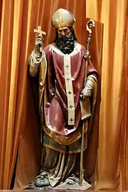 Les piliers sont décorés de statues en plâtre ou en carton-pierre ; on trouve ainsi en partant de l'entrée vers le chœur :